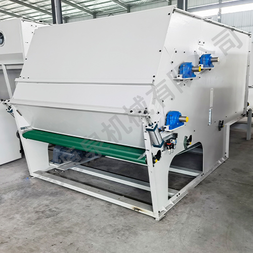 把各種捆包纖維、原料經(jīng)電子稱(chēng)重后,喂入平簾輸送至主體混倉(cāng)內(nèi),再由三道開(kāi)松輥高速開(kāi)松混合后,經(jīng)輸棉風(fēng)機(jī)以適量的風(fēng)量輸送纖維原料供后道工作使用。經(jīng)本機(jī)開(kāi)松混合后的纖維、原料效果好,混合均勻,以備梳理使用。