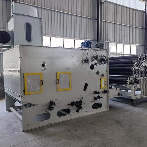 這臺機器用于將纖維(開松和混合后)輸送到梳理機進行下一道工序。采用容積式定量振動喂入,光電控制,與主開松光電聯(lián)動,給棉量更加均勻準確。