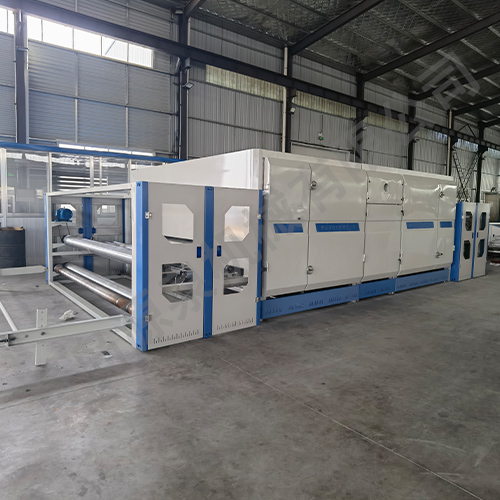 通過本機(jī)作用可生產(chǎn)無膠棉、仿絲棉等,產(chǎn)品廣泛應(yīng)用于服裝、繡品、床上用品、家私、旅游產(chǎn)品等。該機(jī)器可采用1臺(tái)燃燒器加熱或電加熱,循環(huán)風(fēng)機(jī)將熱風(fēng)經(jīng)風(fēng)道穿透對(duì)流,上吹下吸,從而達(dá)到最大節(jié)能效果,而且三層網(wǎng)帶單獨(dú)傳動(dòng),各主傳動(dòng)采用變頻控制。(可根據(jù)客戶需求定制)